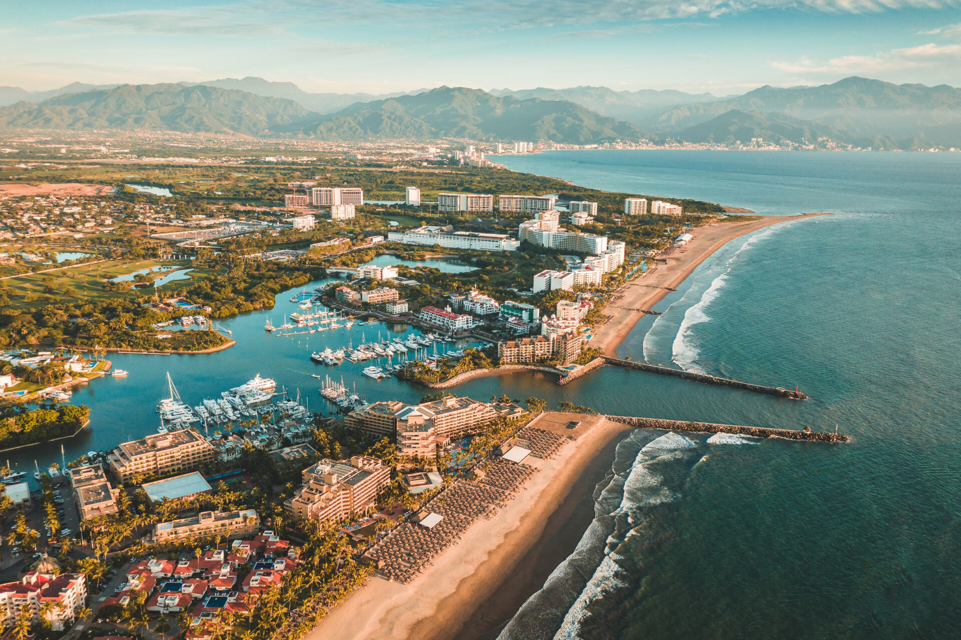 Nuevo Vallarta is a planned residential-resort community located about fifteen minutes north of the Puerto Vallarta International Airport. It is a popular travel destination in the Riviera Nayarit, known for its stunning white sand beaches and world-class amenities. The area features an impressive array of upper-class hotels built along three miles of pristine beachfront.